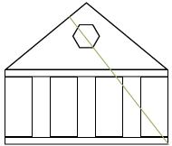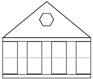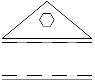 • Juan tiene que recortar la figura de un museo por su eje de simetría para una tarea. ¿Cuál es el corte que tiene que realizar?